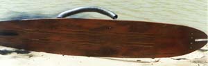 on the boat for safety. Shape of the basic ski 2100 mm long and 350 mm wide with two sets of